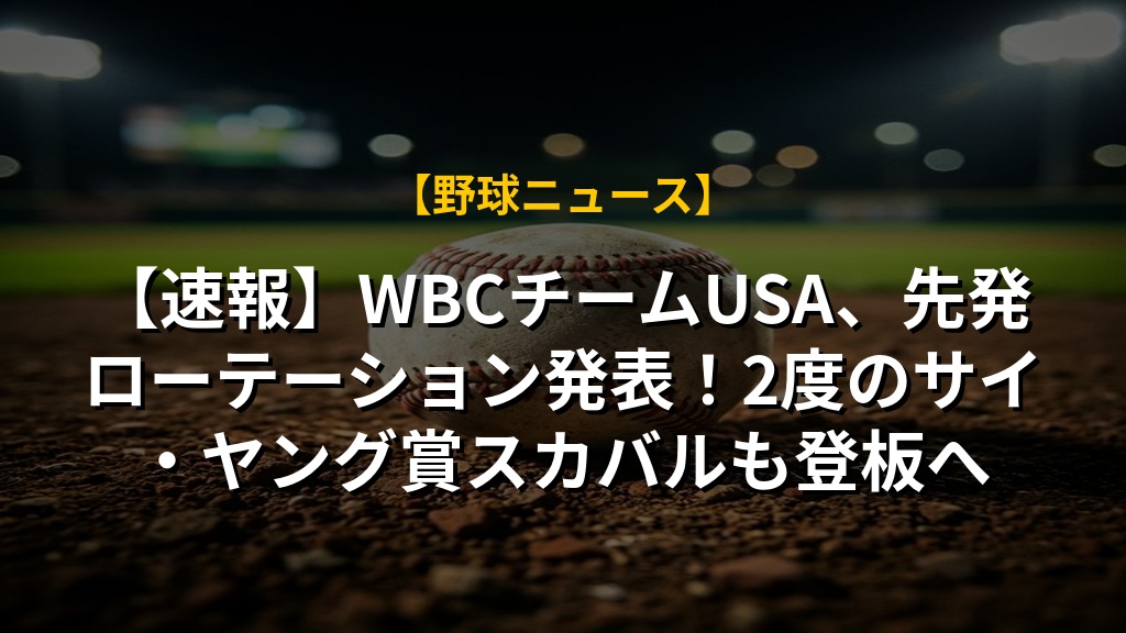 【速報】WBCチームUSA、先発ローテーション発表!2度のサイ・ヤング賞スカバルも登板へ