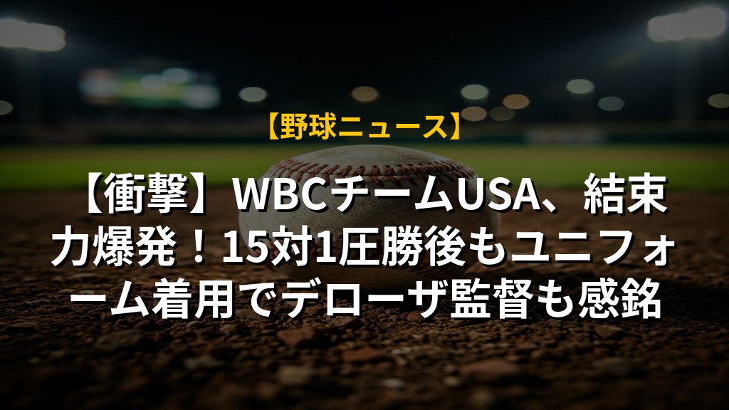 【衝撃】WBCチームUSA、結束力爆発!15対1圧勝後もユニフォーム着用でデローザ監督も感銘