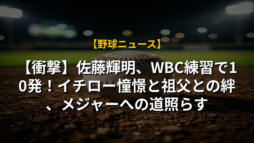 【衝撃】佐藤輝明、WBC練習で10発!イチロー憧憬と祖父との絆、メジャーへの道照らす