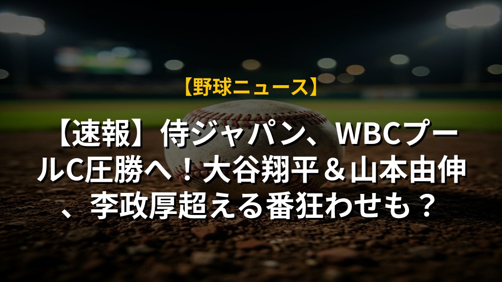 【速報】侍ジャパン、WBCプールC圧勝へ!大谷翔平&山本由伸、李政厚超える番狂わせも?