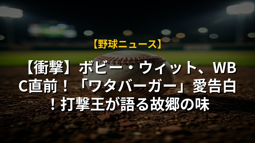 【衝撃】ボビー・ウィット、WBC直前!「ワタバーガー」愛告白!打撃王が語る故郷の味