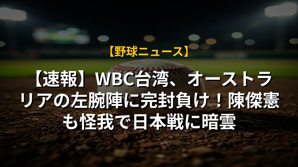 【速報】WBC台湾、オーストラリアの左腕陣に完封負け!陳傑憲も怪我で日本戦に暗雲