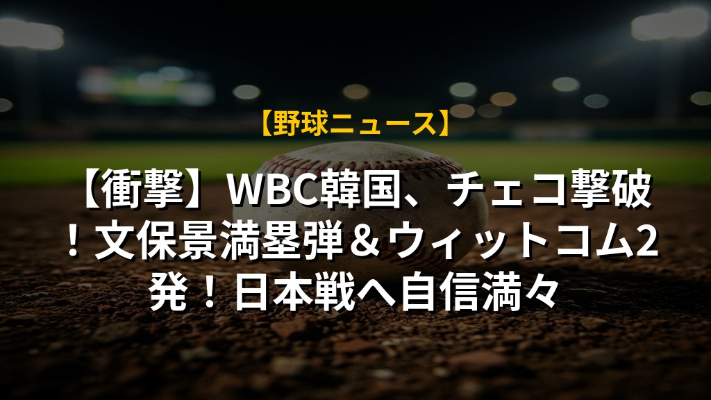 【衝撃】WBC韓国、チェコ撃破!文保景満塁弾&ウィットコム2発!日本戦へ自信満々