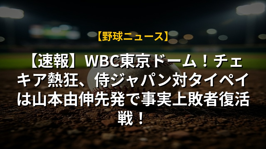 【速報】WBC東京ドーム!チェキア熱狂、侍ジャパン対タイペイは山本由伸先発で事実上敗者復活戦!