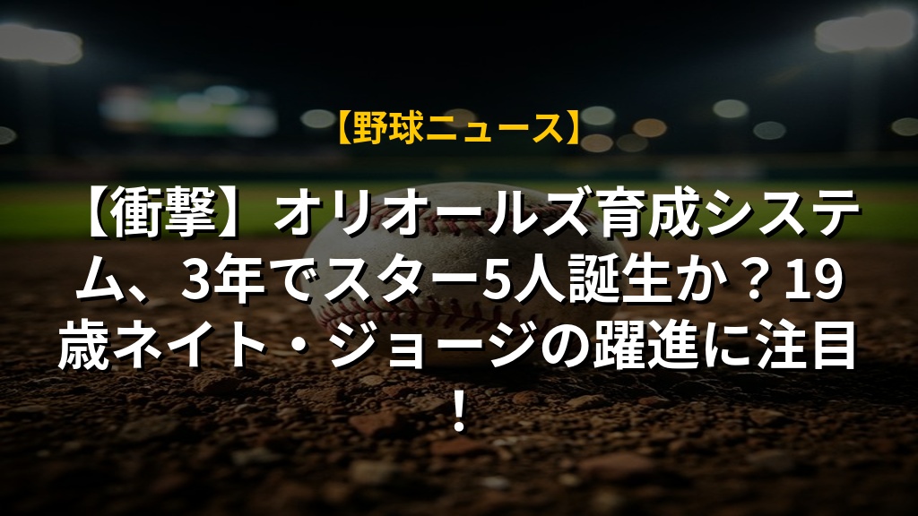 【衝撃】オリオールズ育成システム、3年でスター5人誕生か?19歳ネイト・ジョージの躍進に注目!