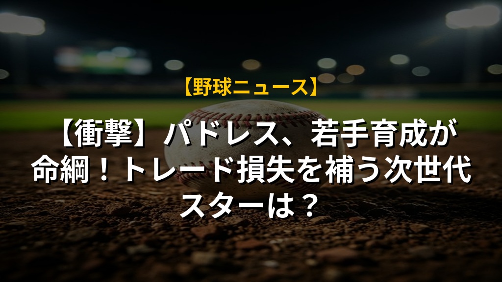 【衝撃】パドレス、若手育成が命綱!トレード損失を補う次世代スターは?