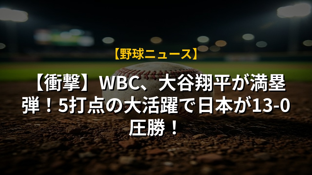 【衝撃】WBC、大谷翔平が満塁弾!5打点の大活躍で日本が13-0圧勝!