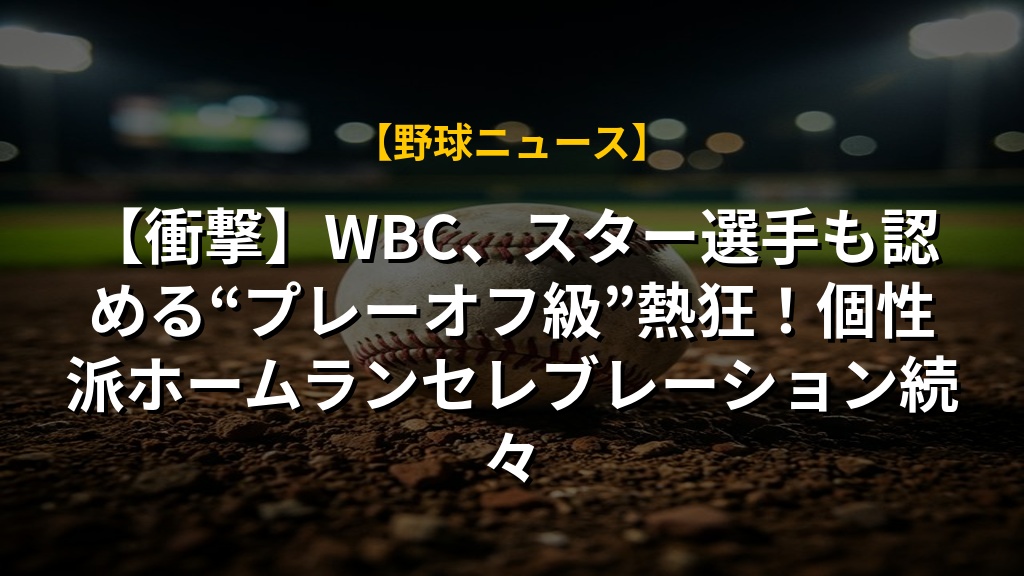 【衝撃】WBC、スター選手も認める“プレーオフ級”熱狂!個性派ホームランセレブレーション続々