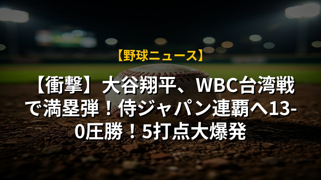 【衝撃】大谷翔平、WBC台湾戦で満塁弾!侍ジャパン連覇へ13-0圧勝!5打点大爆発