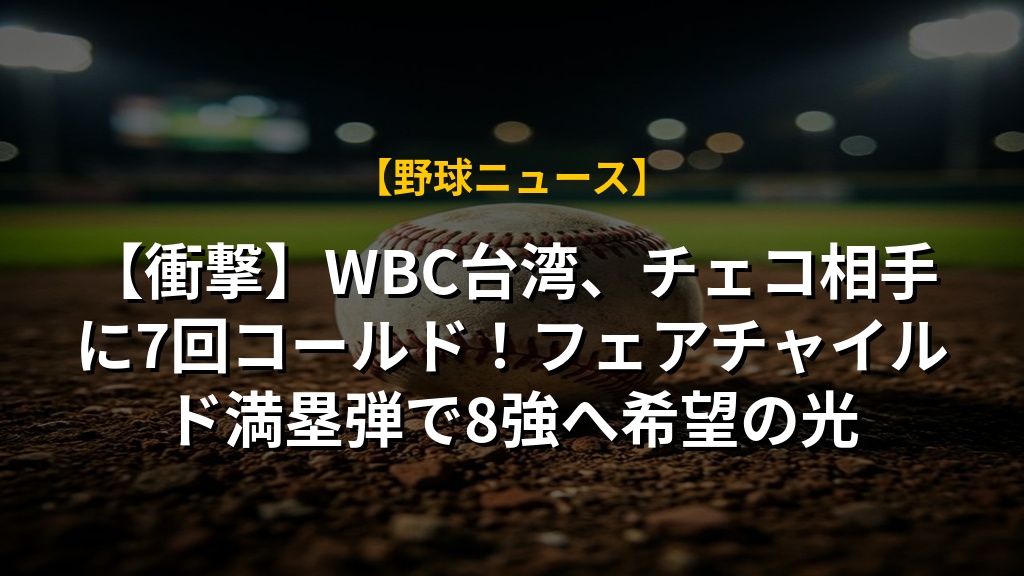 【衝撃】WBC台湾、チェコ相手に7回コールド!フェアチャイルド満塁弾で8強へ希望の光
