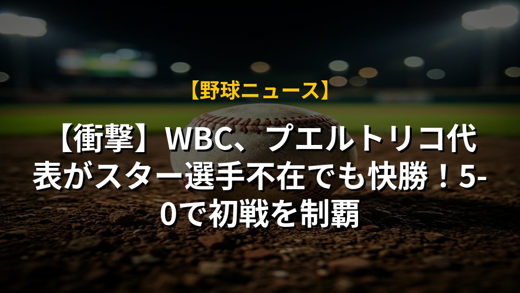 【衝撃】WBC、プエルトリコ代表がスター選手不在でも快勝!5-0で初戦を制覇