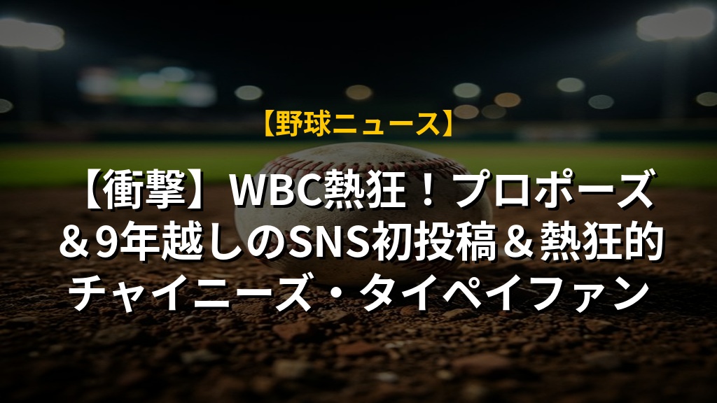 【衝撃】WBC熱狂!プロポーズ&9年越しのSNS初投稿&熱狂的チャイニーズ・タイペイファン