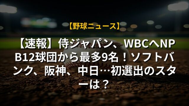 【速報】侍ジャパン、WBCへNPB12球団から最多9名!ソフトバンク、阪神、中日…初選出のスターは?