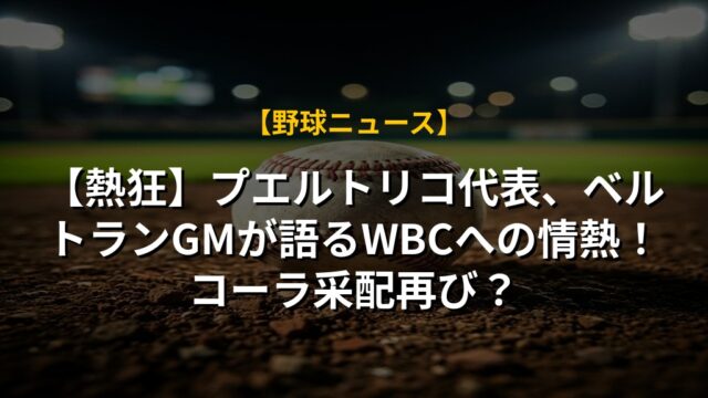 【熱狂】プエルトリコ代表、ベルトランGMが語るWBCへの情熱!コーラ采配再び?