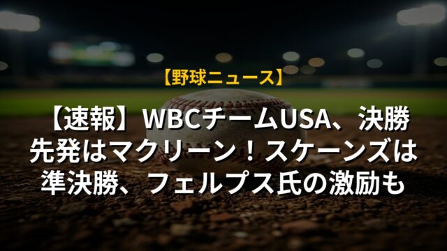 【速報】WBCチームUSA、決勝先発はマクリーン!スケーンズは準決勝、フェルプス氏の激励も