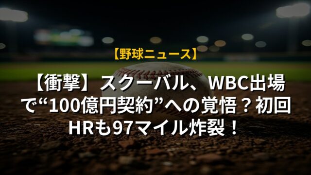 【衝撃】スクーバル、WBC出場で“100億円契約”への覚悟?初回HRも97マイル炸裂!