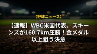 【速報】WBC米国代表、スキーンズが160.7km圧勝!金メダル以上狙う決意