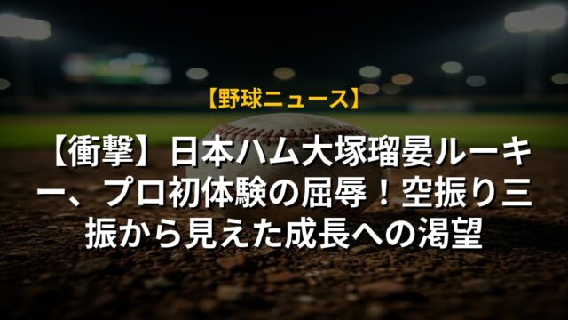 【衝撃】日本ハム大塚瑠晏ルーキー、プロ初体験の屈辱!空振り三振から見えた成長への渇望