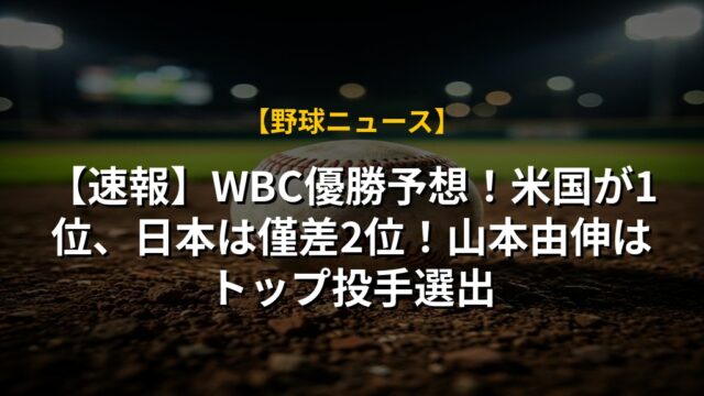 【速報】WBC優勝予想!米国が1位、日本は僅差2位!山本由伸はトップ投手選出