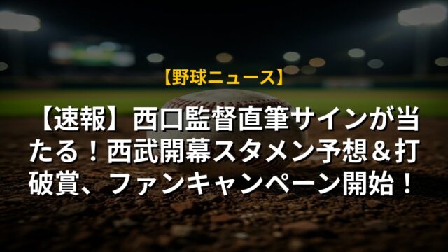 【速報】西口監督直筆サインが当たる!西武開幕スタメン予想&打破賞、ファンキャンペーン開始!