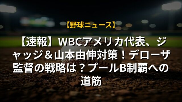 【速報】WBCアメリカ代表、ジャッジ&山本由伸対策!デローザ監督の戦略は?プールB制覇への道筋