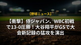 【衝撃】侍ジャパン、WBC初戦で13-0圧勝!大谷翔平がGSで大会新記録の猛攻を演出