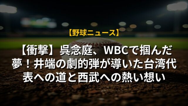 【衝撃】呉念庭、WBCで掴んだ夢!井端の劇的弾が導いた台湾代表への道と西武への熱い想い