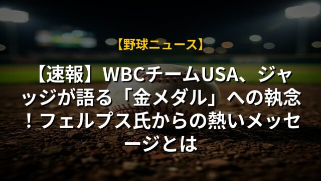 【速報】WBCチームUSA、ジャッジが語る「金メダル」への執念!フェルプス氏からの熱いメッセージとは