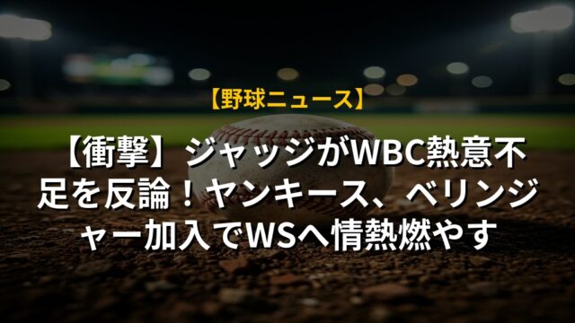 【衝撃】ジャッジがWBC熱意不足を反論!ヤンキース、ベリンジャー加入でWSへ情熱燃やす