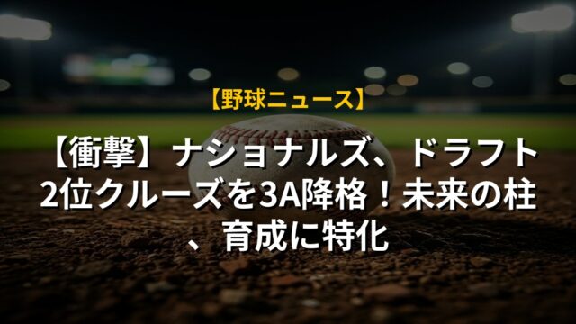 【衝撃】ナショナルズ、ドラフト2位クルーズを3A降格!未来の柱、育成に特化