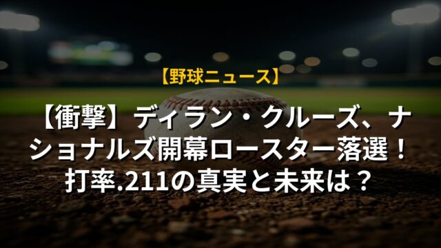 【衝撃】ディラン・クルーズ、ナショナルズ開幕ロースター落選!打率.211の真実と未来は?