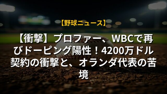 【衝撃】プロファー、WBCで再びドーピング陽性!4200万ドル契約の衝撃と、オランダ代表の苦境