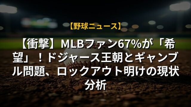 【衝撃】MLBファン67%が「希望」!ドジャース王朝とギャンブル問題、ロックアウト明けの現状分析