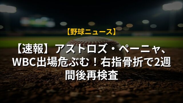 【速報】アストロズ・ペーニャ、WBC出場危ぶむ!右指骨折で2週間後再検査