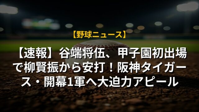 【速報】谷端将伍、甲子園初出場で柳賢振から安打!阪神タイガース・開幕1軍へ大迫力アピール
