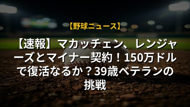 【速報】マカッチェン、レンジャーズとマイナー契約!150万ドルで復活なるか?39歳ベテランの挑戦