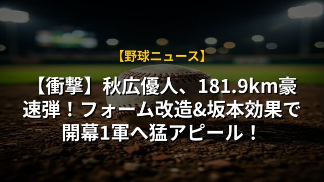 【衝撃】秋広優人、181.9km豪速弾!フォーム改造&坂本効果で開幕1軍へ猛アピール!