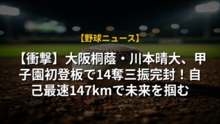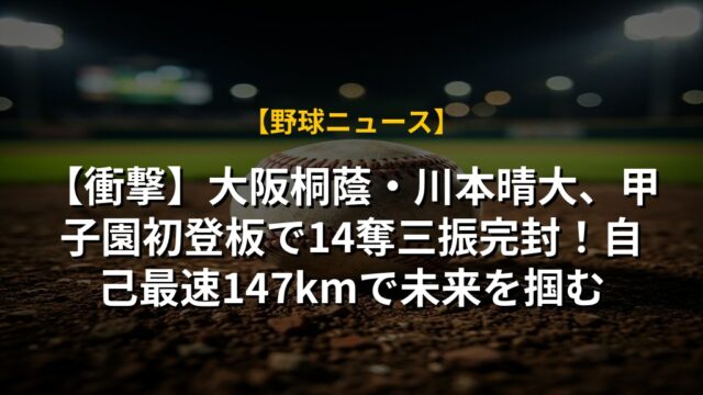【衝撃】大阪桐蔭・川本晴大、甲子園初登板で14奪三振完封!自己最速147kmで未来を掴む