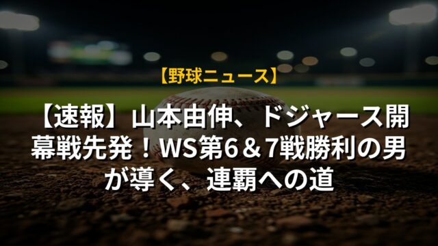 【速報】山本由伸、ドジャース開幕戦先発!WS第6&7戦勝利の男が導く、連覇への道