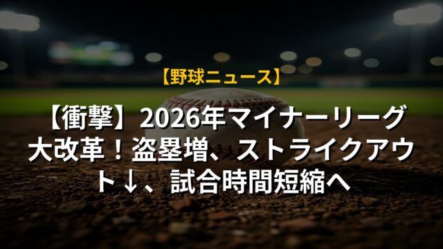 【衝撃】2026年マイナーリーグ大改革!盗塁増、ストライクアウト↓、試合時間短縮へ