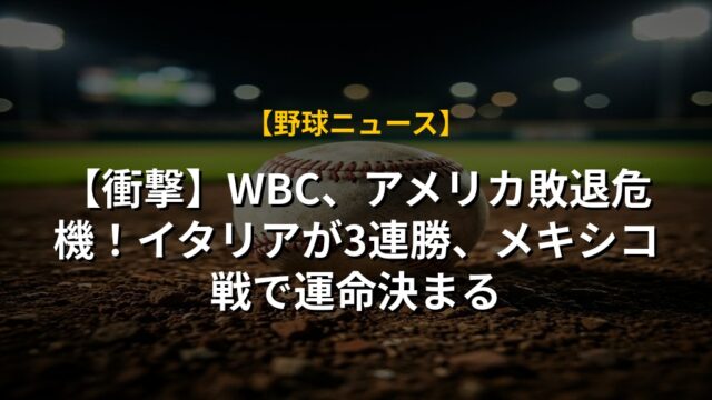 【衝撃】WBC、アメリカ敗退危機!イタリアが3連勝、メキシコ戦で運命決まる