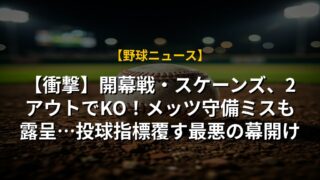 【衝撃】開幕戦・スケーンズ、2アウトでKO!メッツ守備ミスも露呈…投球指標覆す最悪の幕開け