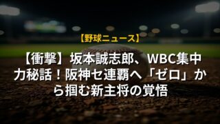 【衝撃】坂本誠志郎、WBC集中力秘話!阪神セ連覇へ「ゼロ」から掴む新主将の覚悟