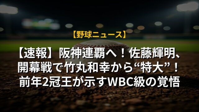 【速報】阪神連覇へ!佐藤輝明、開幕戦で竹丸和幸から“特大”!前年2冠王が示すWBC級の覚悟