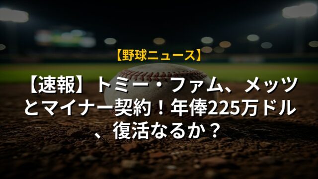 【速報】トミー・ファム、メッツとマイナー契約!年俸225万ドル、復活なるか?