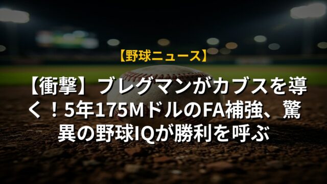 【衝撃】ブレグマンがカブスを導く!5年175MドルのFA補強、驚異の野球IQが勝利を呼ぶ