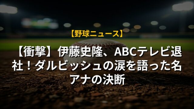 【衝撃】伊藤史隆、ABCテレビ退社!ダルビッシュの涙を語った名アナの決断