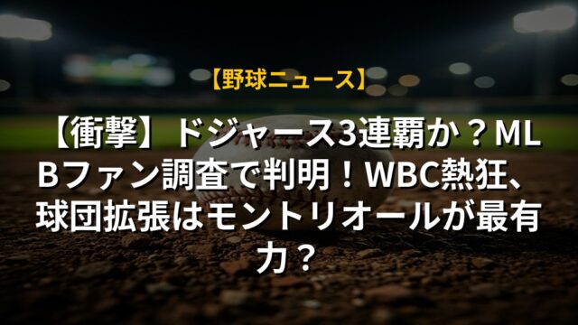 【衝撃】ドジャース3連覇か?MLBファン調査で判明!WBC熱狂、球団拡張はモントリオールが最有力?