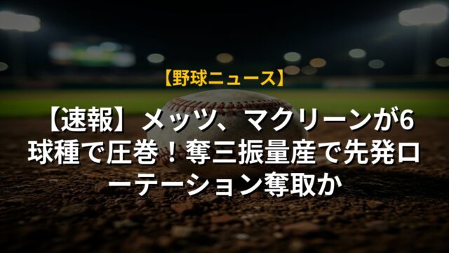 【速報】メッツ、マクリーンが6球種で圧巻!奪三振量産で先発ローテーション奪取か