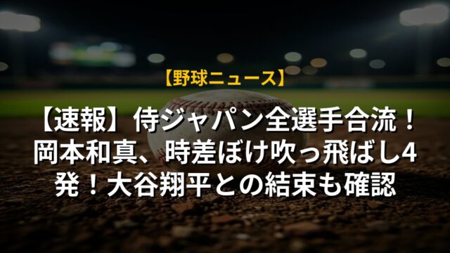 【速報】侍ジャパン全選手合流!岡本和真、時差ぼけ吹っ飛ばし4発!大谷翔平との結束も確認